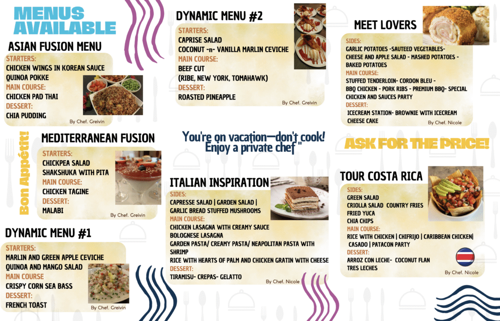 Elevate your stay with a personalized culinary experience in the comfort of your vacation rental.
